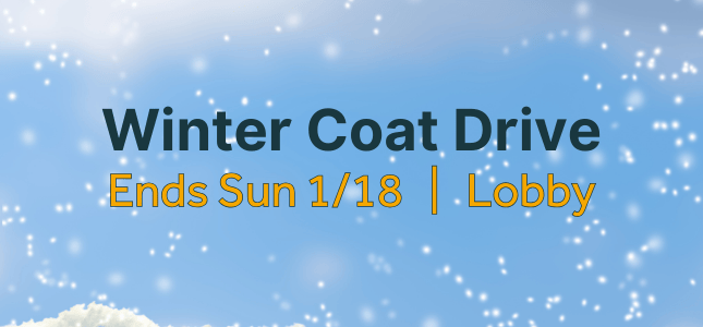Help local kids in need stay warm this winter by donating a gently used or new winter coat! Hats, scarves and gloves also welcome. Please bring your coats to the donation bin in the church lobby near the cafe by Sunday, January 18. Thank you!