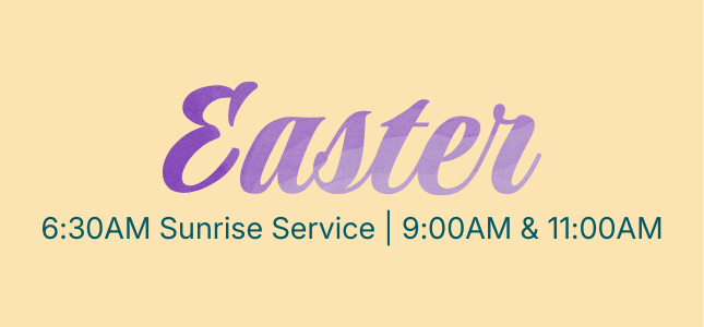 We will share the Easter Story at Kid's Church at 9:00AM. Please check your kids in at the lobby kiosks. Elementary kids come with you to the sanctuary for worship and are then realeased. Nursery and Preschool are dropped off directly at their classrooms before the service.