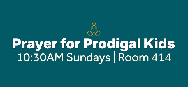 Join a small group of parents who gather every week to pray for their adult children who are far from Jesus. Everyone is welcome.